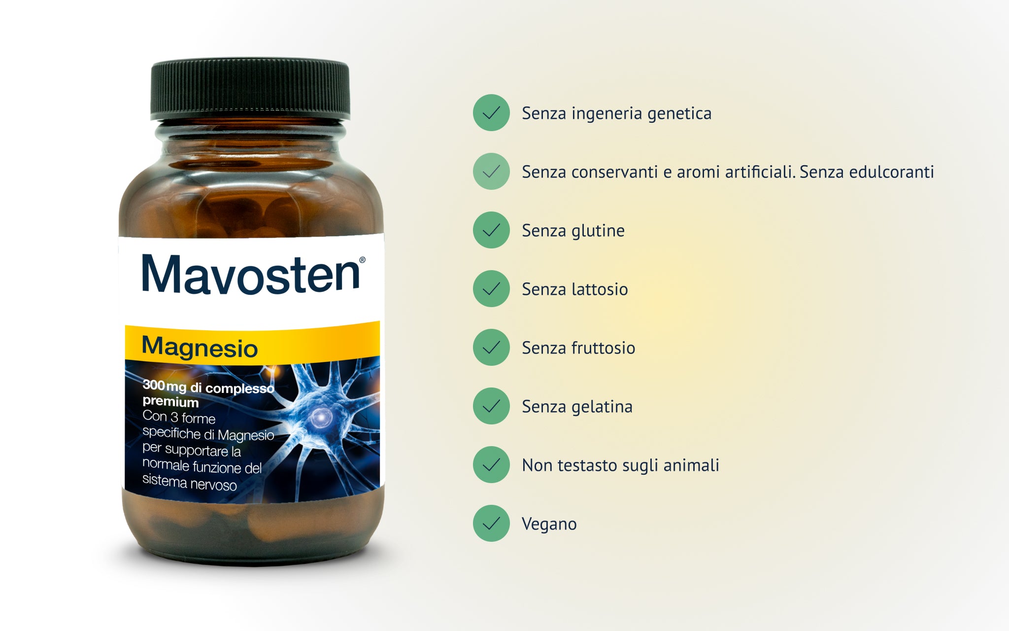 - 300 mg di magnesio elementare per dose giornaliera – in un complesso di alta qualità, perché il benessere del sistema nervoso conta